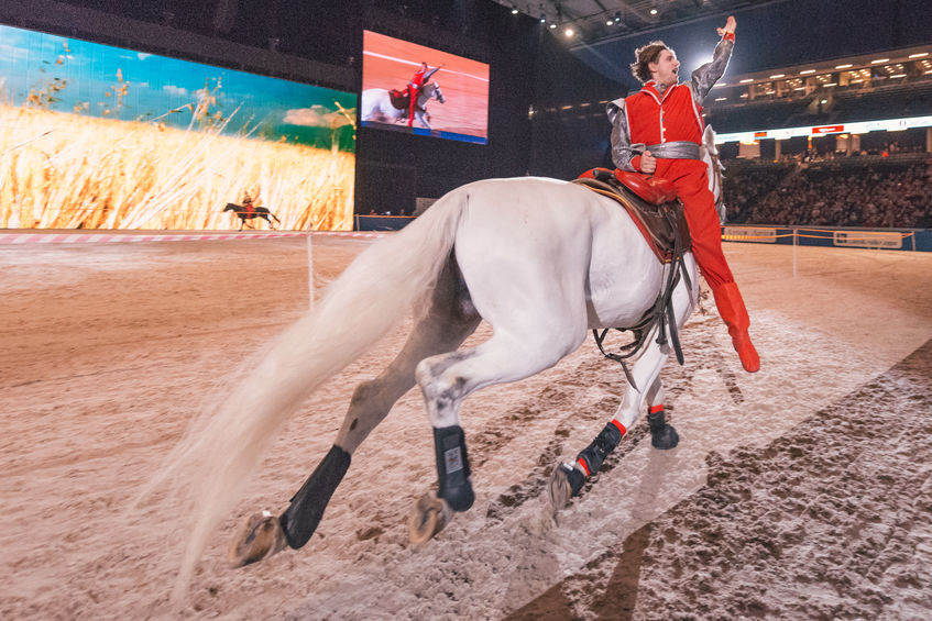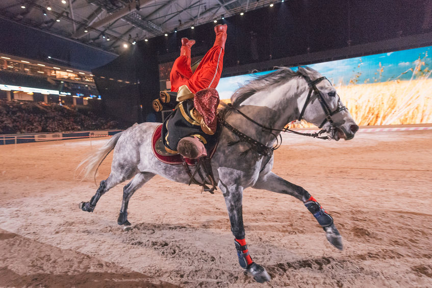 Aby wykonywać tego typu elementy trzeba mieć wyjątkowo posłuszne i zrównoważone konie. Wyszkolenie zwierzęcia do pracy w takich pokazach trwa latami.